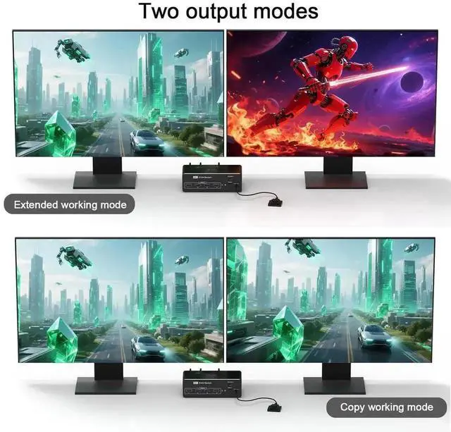 Enjoy 8K@60Hz and 4K@144Hz resolutions with the DisplayPort KVM switch. Perfect for high-definition gaming, video editing, and multimedia tasks. Backward compatible with 4K@60Hz, 2K, 1080P, ensuring a clear and smooth experience. Automatic resolution detection for easy switching between devices with different display resolutions.