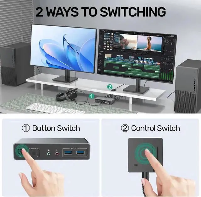 The HDMI KVM switches 2 monitors 2 computers supports up to 4K@60Hz screen display. Backward compatible with 4K@30Hz, 1080P.