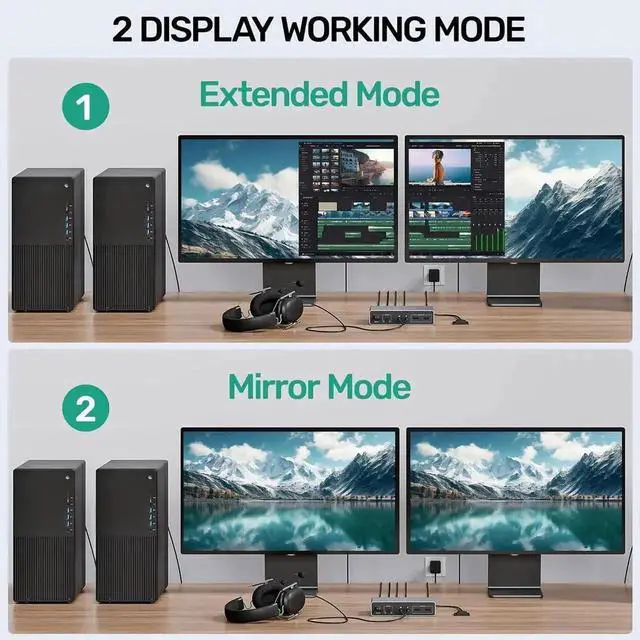 This HDMI KVM Switch allows the connection of 2 computers and 2 monitors. 2 computer input ports support 2 HDMI ports. The 2 monitor outputs support 2 HDMI monitors. And supports extended and mirrored modes.