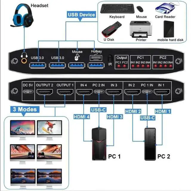 Product Type: HDMI USB 3.0 KVM Matrix (2 in 2 out)