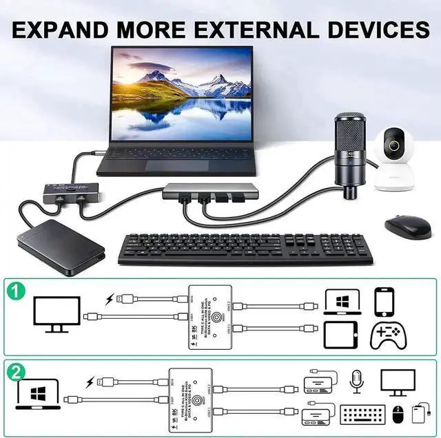 Work as a USB C switcher, 2 video sources share 1 display.