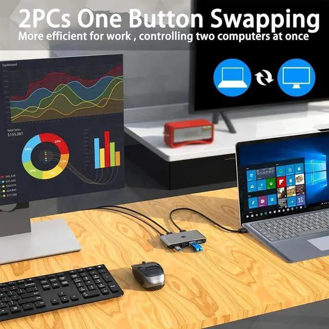1. Connect your computers using the supplied type A to type A cable. (Up to four computers can be connected)