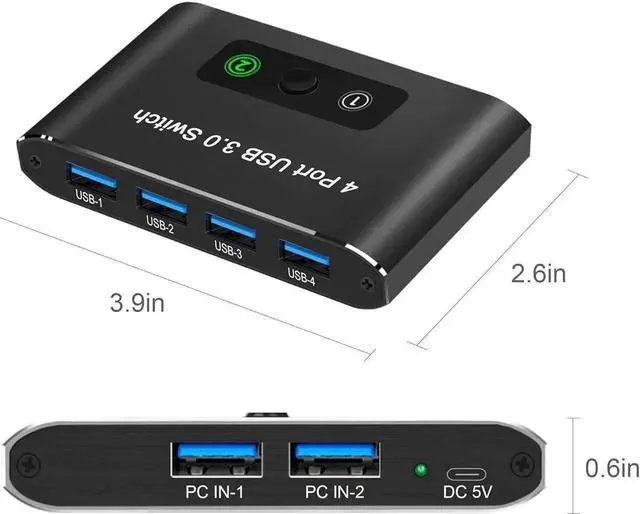 The KVM Switch usb comes with 4 USB 3.0 ports with transfer rates up to 5Gbps for connecting peripherals such as mice, keyboards, printers, webcams, and USB sticks with backward compatibility with 10 times faster than USB 2.0. The USB Switch 3.0 is backward compatible with USB 2.0/1.1. Note: It doesn't support USB devices with more than 10W power