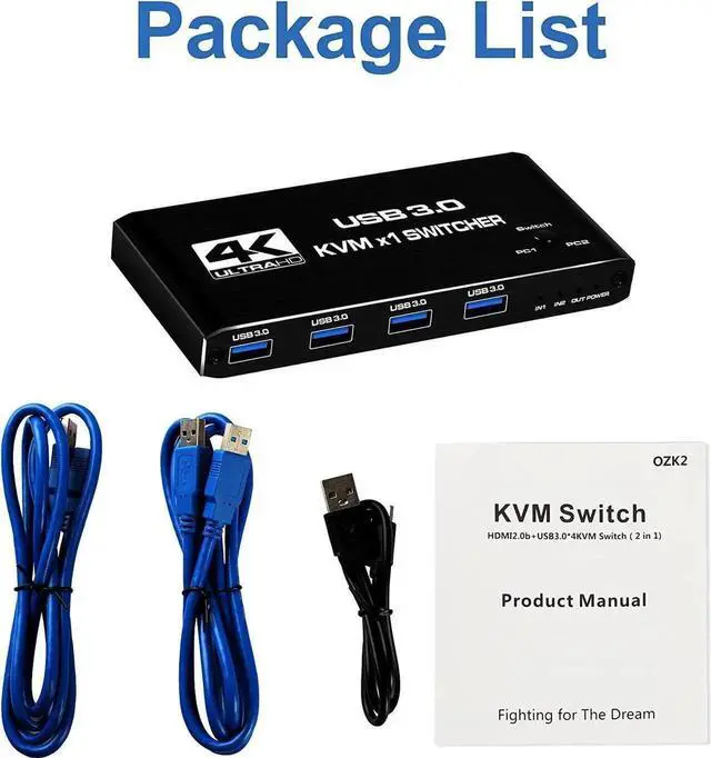 Ultra HD 4K@60Hz Visual Enjoyment - This HDMI USB KVM switch supports resolutions up to 4K@60Hz, making the image display more fascinating and vividly colorful. It also comes with 4 USB 3.0 ports, presenting ultra-fast data transfer and quick response to commands
