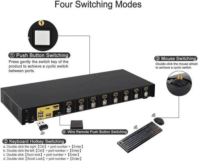 If your devices without HDMI port, please purchase reliable converter with chip. The quality of converter may affect the function of KVM switch.