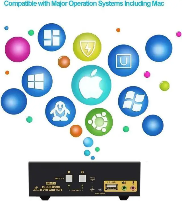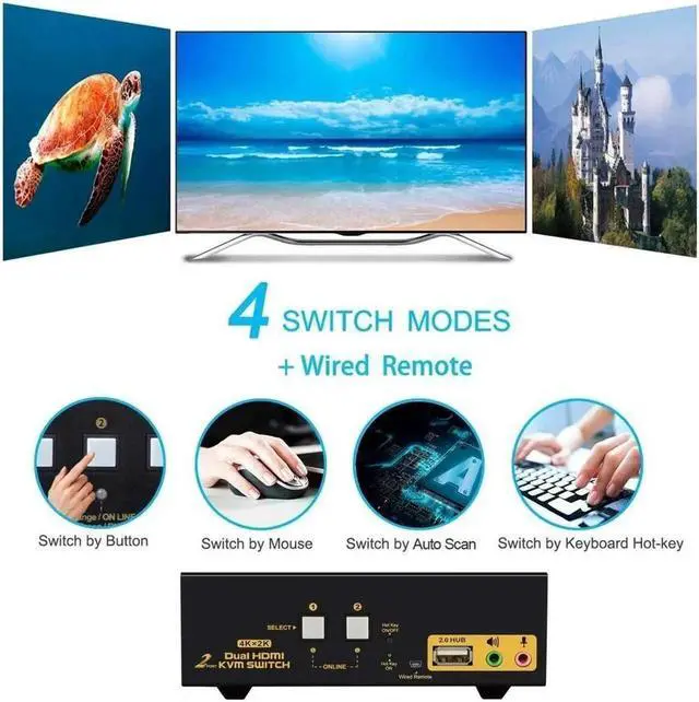 HDMI KVM WITH WIDE COMPATIBILITY??: Cross Support Multiple Operation Systems & Devices: Fully compatible with Windows 10/7/2000/XP/ and Mac; also support HDMI devices like webcam, hard disk player, game console, DVR, NVR etc.?? HDMI SWITCH BOX WITH COMVENIENT SWITCH MODES??:
