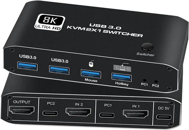[8K HDMI KVM Switch 2 in-1 out] allows you to control 2 computers through a set of controls and monitors (mouse and keyboard).