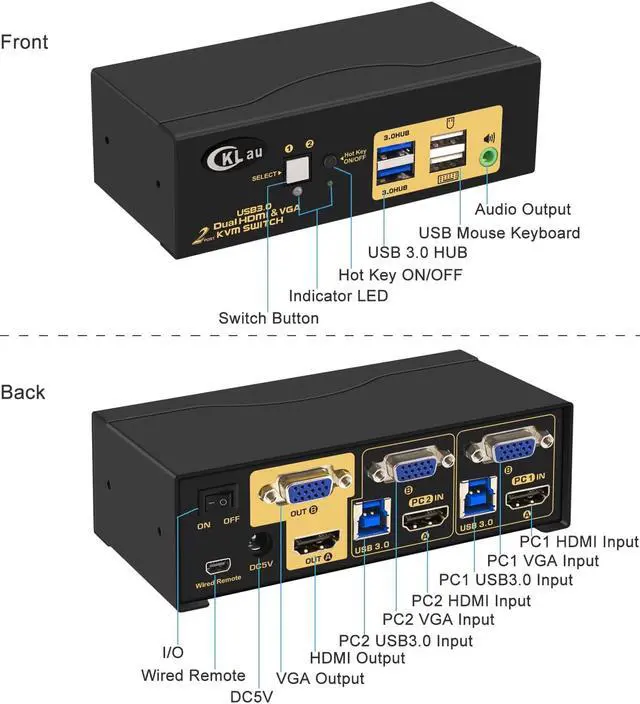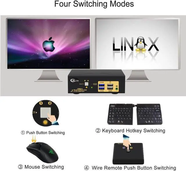 Dual Monitor KVM Switch Dual Monitor HDMI KMV Switches KVM Dual Monitor KVM for Mac KVM Switch USB 3.0 KVM Switch 4K