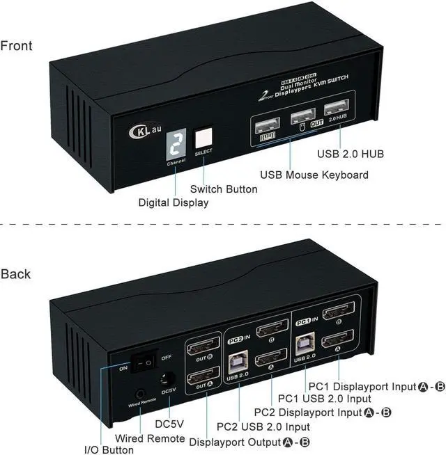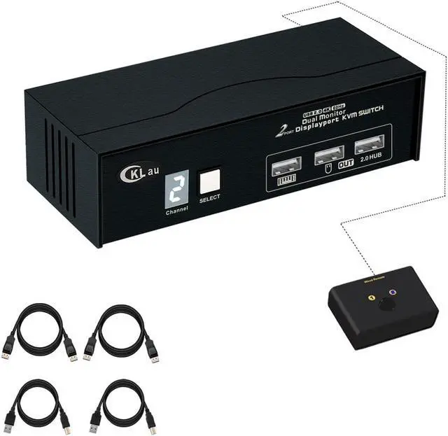 CKLau KVM Switch Dual Monitor Displayport 2 Monitor KVM Switch 2 Port