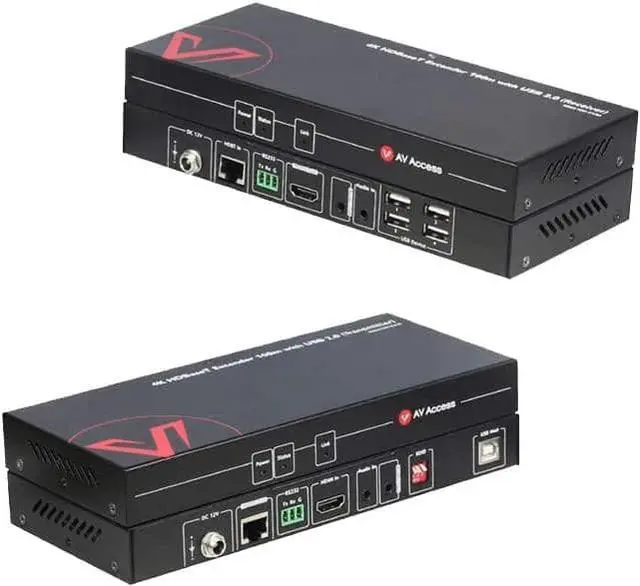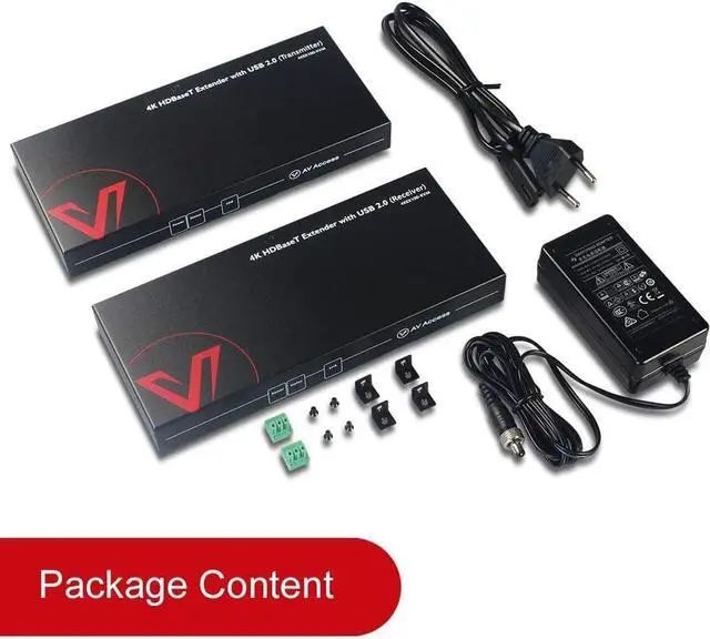 AV Access HDMI USB Extender(HDBaseT) KVM, 100m/330ft 4K 60Hz 1080p 120Hz Over Cat5e/6/6a/7, Keyboard+Mouse+HDMI+USB, 4 Ports USB2.0, No Signal Loss and Latency, RS232, POE, Independent EDID Management