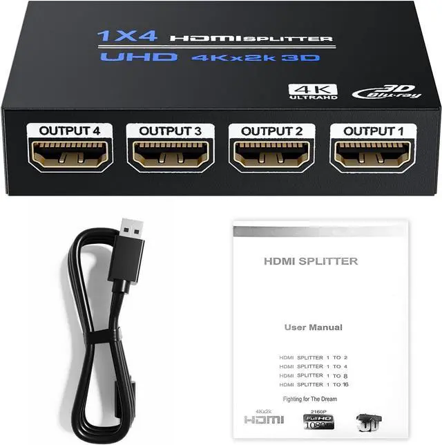 What You Get: 1x HDMI Splitter, 1x Power cord, 1x User Manual