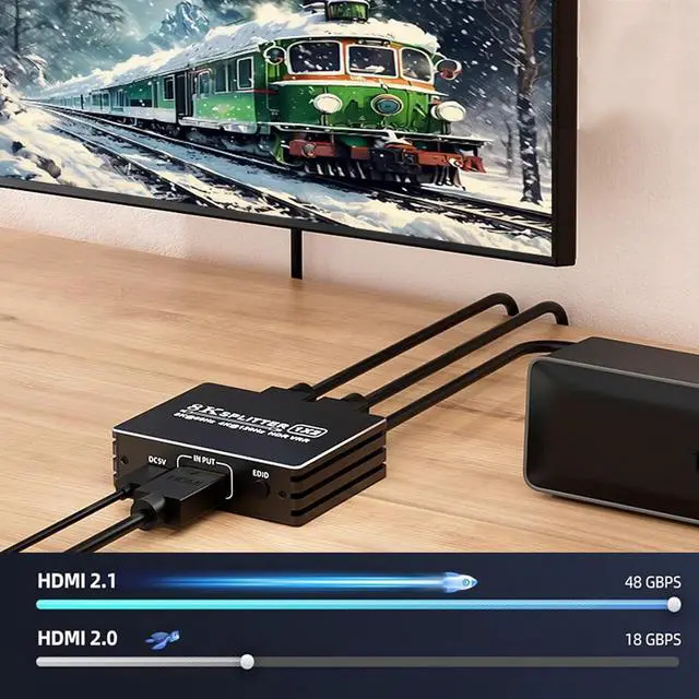 - Broad Compatibility: HDMI 2.1 Splitter 1 In 2 out compatible with some gaming consoles like Xbox, PS4, PS5, Nintendo Switch; Streamers like Apple TV, Fire Stick; DVD, Laptop, PC, Monitors, HDTV, Projector, NVIDIA and AMD graphics cards