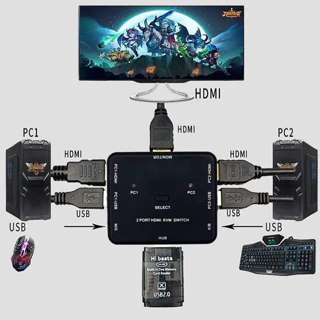 1. Connect the host to the KVM switch with the HDMI cable and the USB cable, and connect the host to the KVM interface at the other end.