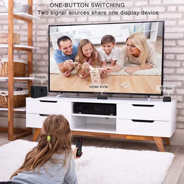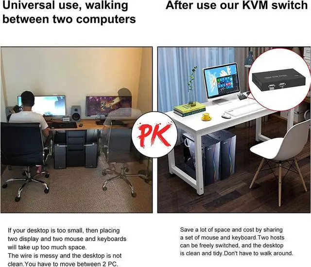 2 Ports USB HDMI KVM Switch BoxThis HDMI KVM Switcher allows you to control 2 computer with only one set of controls and display screen (mouse and keyboard). KVM swtiches support host button switch and hot key switch.
