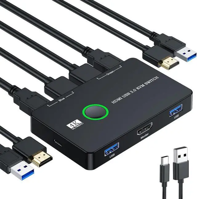 this KVM switch supports ultra-fast USB 3.0 data transfer rates of up to 5Gb/s (10 times faster than USB 2.0).