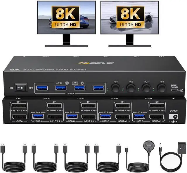 The dual displayport 1.4 KVM support panel button switching and wired remote control switching (including in the package), LED indicates the active computer. It is compatible with Windows/Vista/XP/Mac OS/Linux and Unix operating systems, plug and play, NO driver or complex software needed, easy to use.