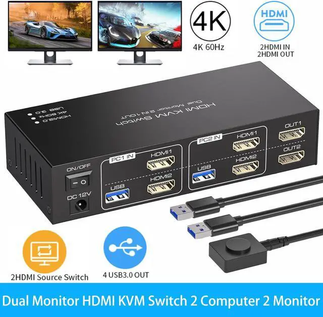 KVM Switch For 2 Computers 2 Monitors