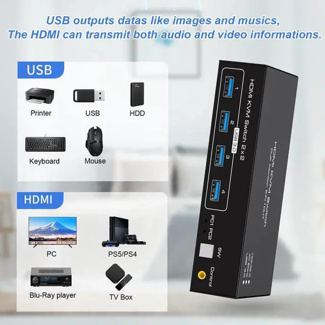 Unlock the potential of your workspace with the double-layer KVM switch, perfect for diverse environments such as home offices, gaming setups, and professional workstations. Seamlessly manage multiple devices without clutter, ensuring optimal productivity and convenience in any scenario.