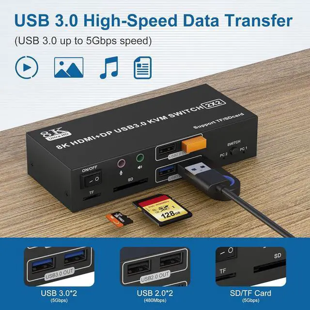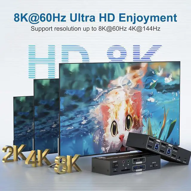 8K@60Hz 4K@120Hz HDMI Displayport KVM Switch 2 Computer 2 Monitor