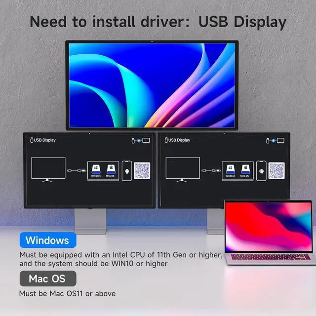 A: Suitable for laptops and Mini boxes (11th generation or higher CPUs) that support DP alt mode.
