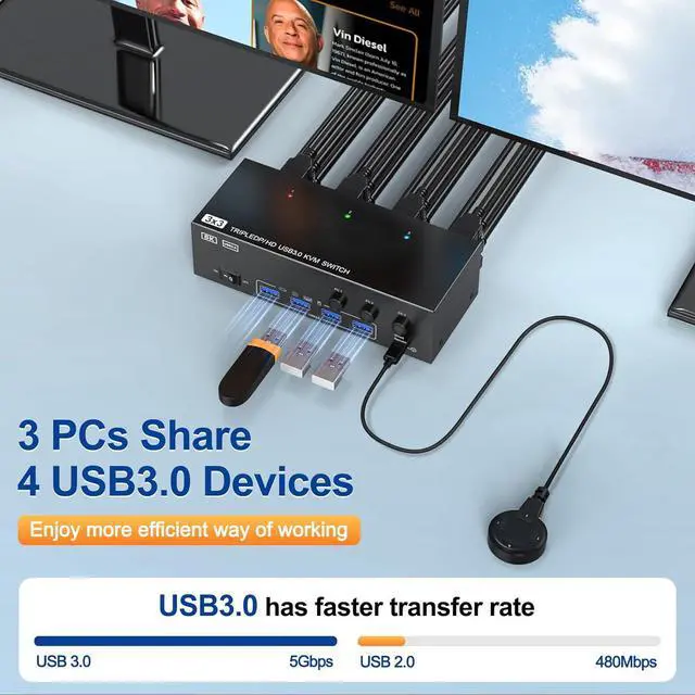 3 PC share 3 Monitor and 4 USB 3.0 Devices