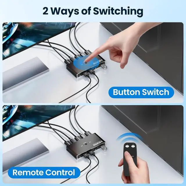 Widely Used & Plug and PlayNo need for additional drivers or software. Simply connect your devices, and the 2 port HDMI switch is ready to go. Compatible with various setups, from home offices to professional workstations.