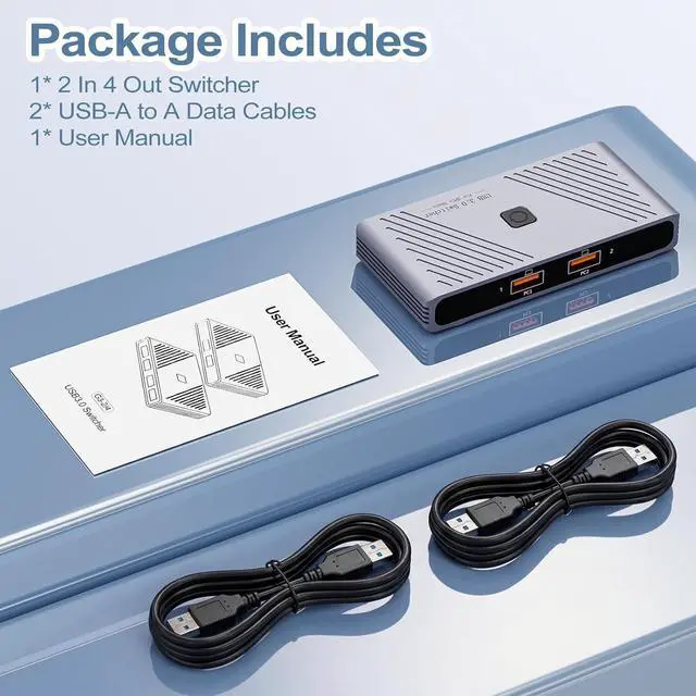 Includes 2 USB 3.0 Connection Cables: Get started immediately. The package includes two necessary USB 3.0 A-to-A cables to connect the switch box to your two computers, providing a complete sharing solution