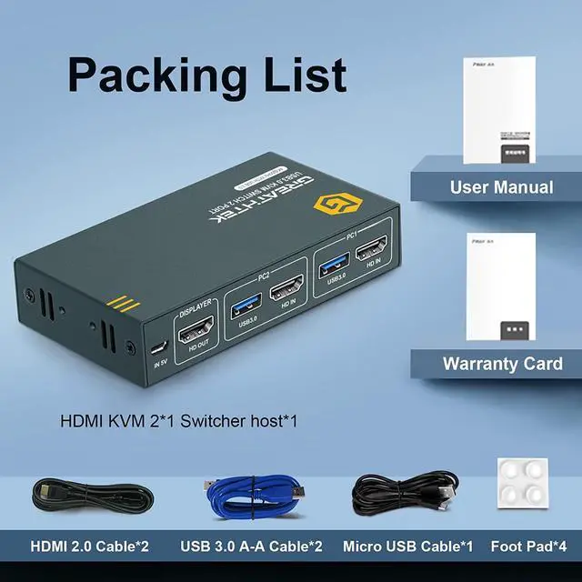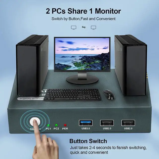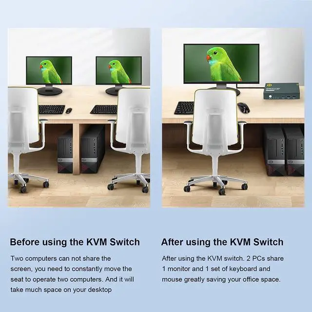[Button Switch ] You can switch between 2 computers through press the button on the HDMI switch. The HDMI KVM switch no need any driver, is simple, easy to install, even you are firstly use this type of switcher, dont worry, you can install well.
