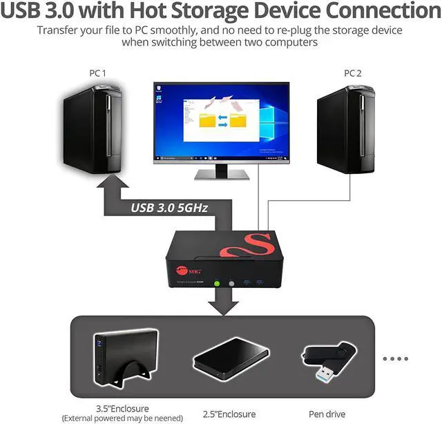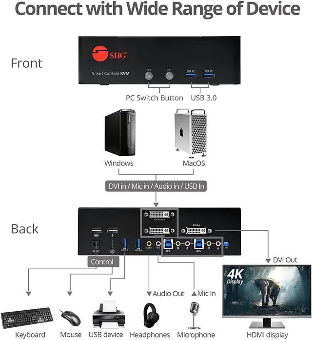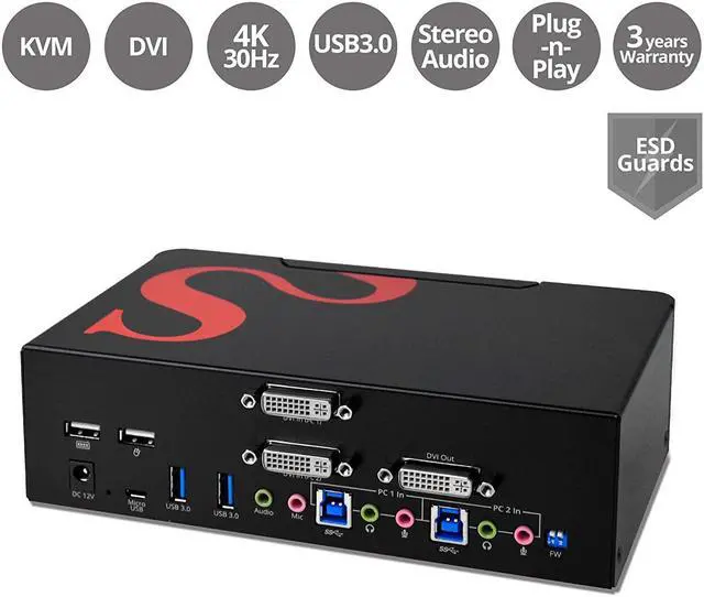 Advanced features: comes with 2 USB 1.1 Ports for keyboard and Mouse connection, and 4 USB 3.0 Ports. Connect multiple USB peripherals such as flash drives, printers and more simultaneously. Includes 3.5 mm jack for microphone input and stereo speakers/headphones. Auto-scan feature for quick browsing and system monitoring. Firmware upgrade feature via Micro USB port for future compatibility
