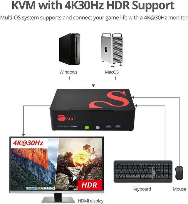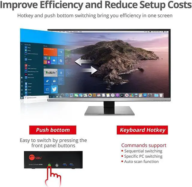 Plug-and-play: plug-n-play, no driver installation. Easy system selection via front panel selection buttons or user programmable keyboard hot-key commands
