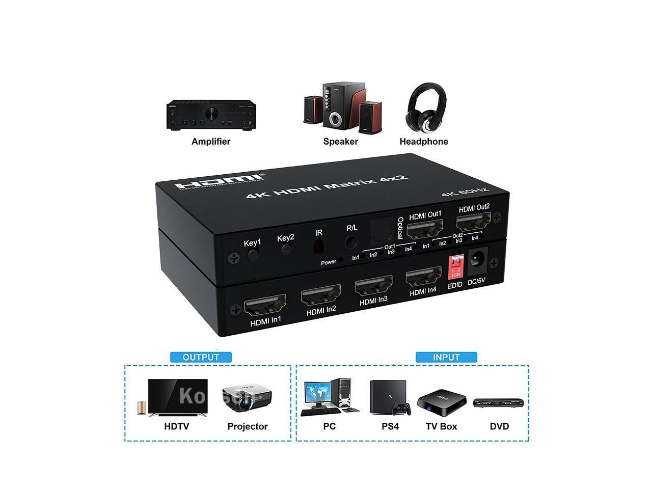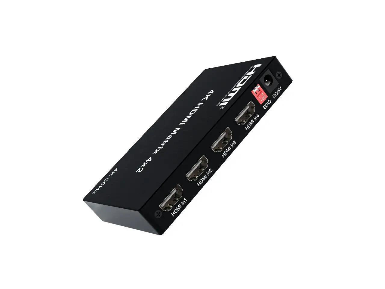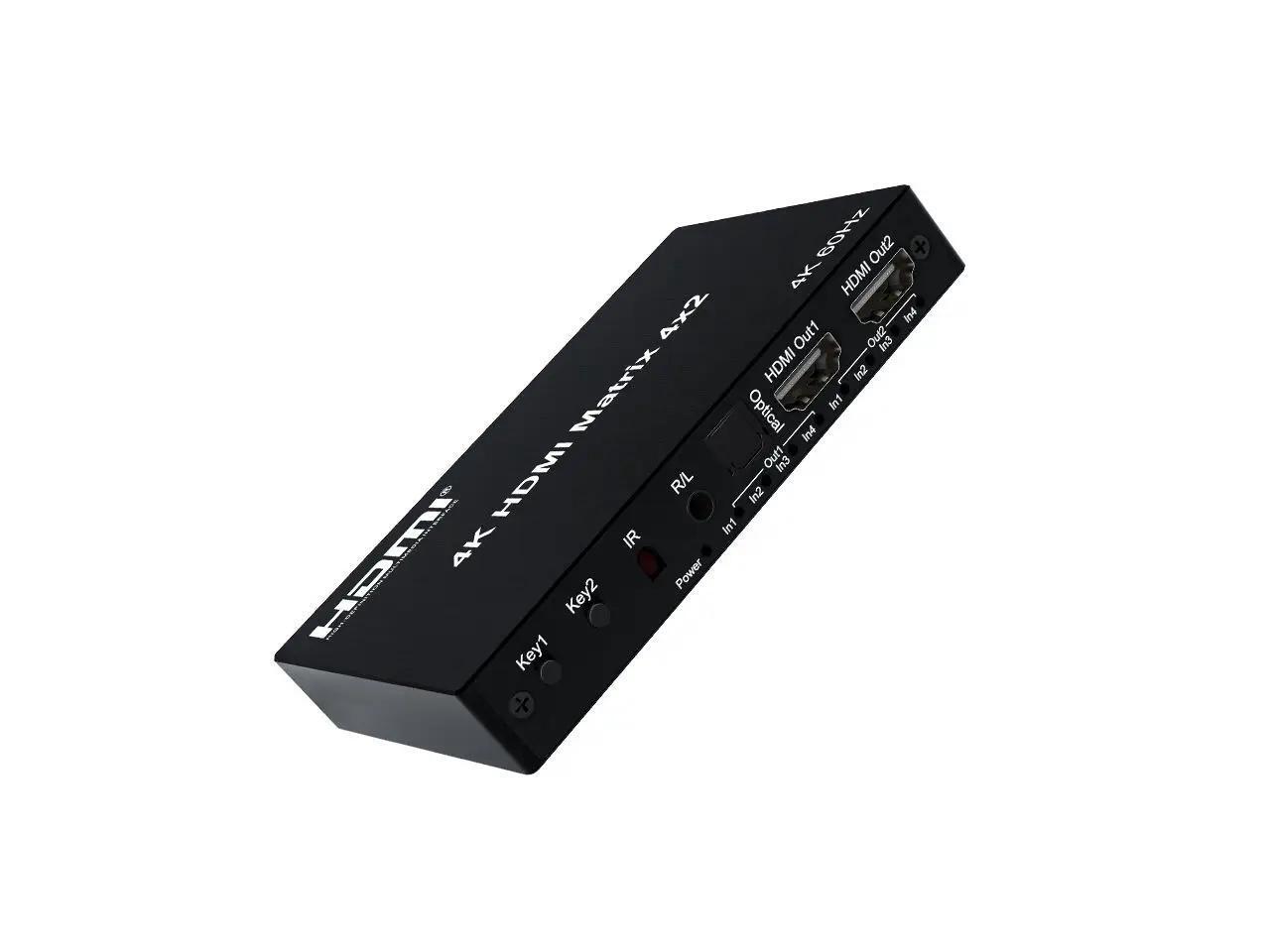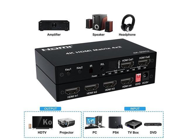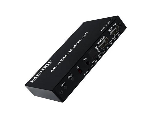 4K HDMI True Matrix Switcher 4x2 2x4 2x2 Matrix HDMI Switch Splitter 2 In 4 Out with Optical & R/L Audio Extractor Dolby HDCP2.2(With UK Plug)