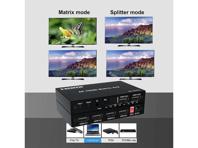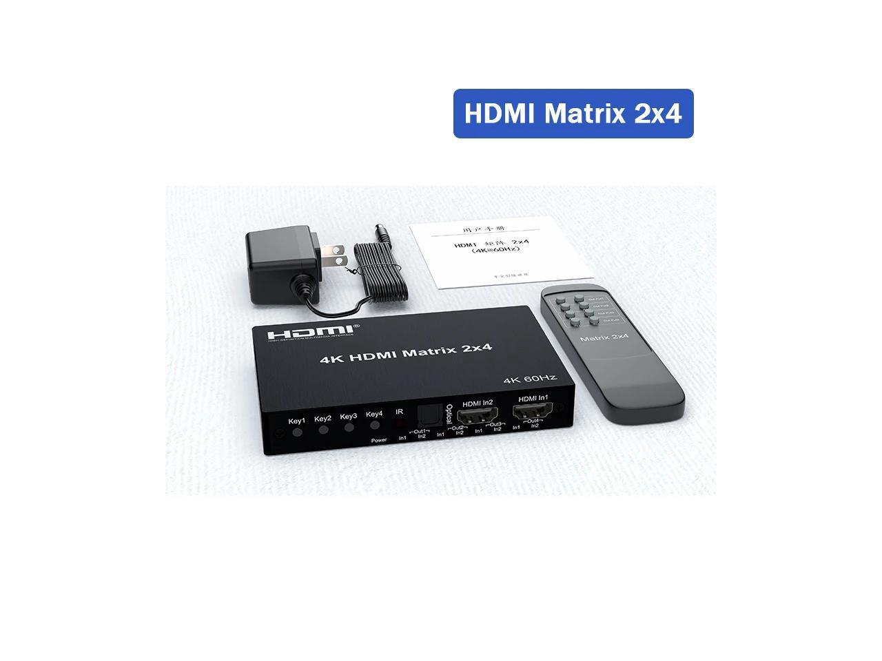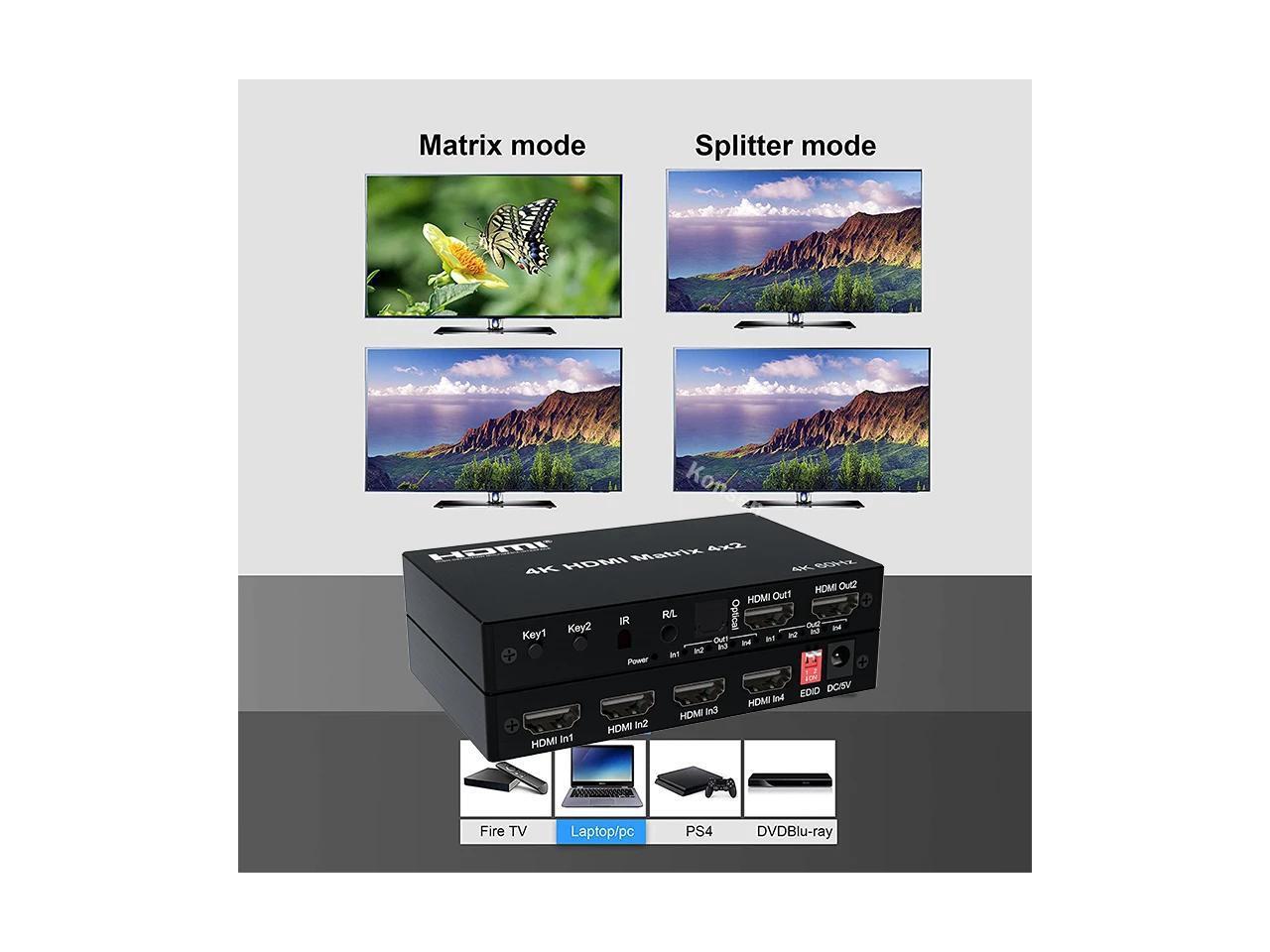 4K HDMI True Matrix Switcher 4x2 2x4 2x2 Matrix HDMI Switch Splitter 2 In 4 Out with Optical & R/L Audio Extractor Dolby HDCP2.2(With UK Plug) (Matrix 2x4)
