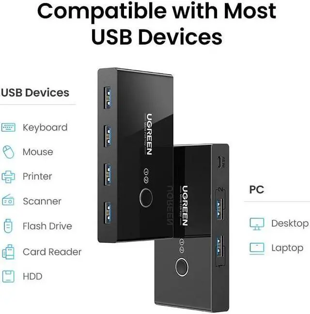 4Port USB Switch is an excellent choice to share 4 USB devices between two Comptuers;
