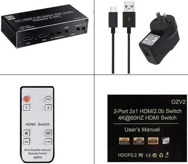 • 4K HDMI Switcher Audio Extractor 2 in 1 Out Selector with R/L+Toslink SPDIF+COAXIAL Audio out HDMI ARC Audio Switch 2x1 Adapter(AU power supply)