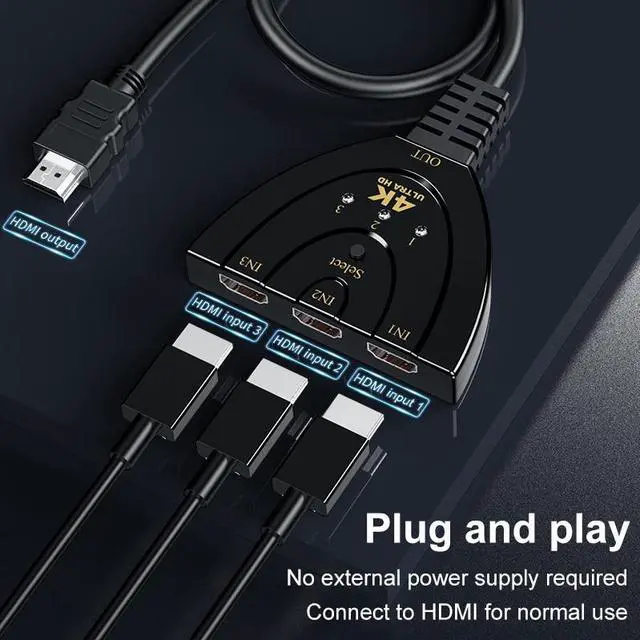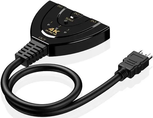 This 3 input to 1 output HDMI-compatible switcher has the key-press-switching function and has the inteligent function. The 3 input to 1 output HDMI-compatible switcher routes high definition 4k*2k video and digital audio from any one of the 3 sources to display unit. Three inputs accommodate the simultaneous connection of high definition video sources, such as HD player, Blu-ray player, Set Top Box, P&S3, Xbox360 etc. The output sends the high definition audio/video signals to a high definition display like HDTV.