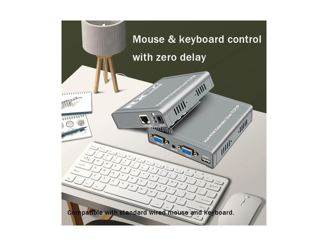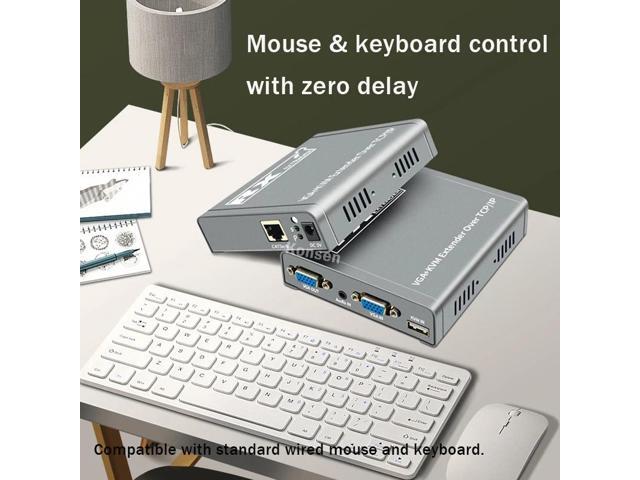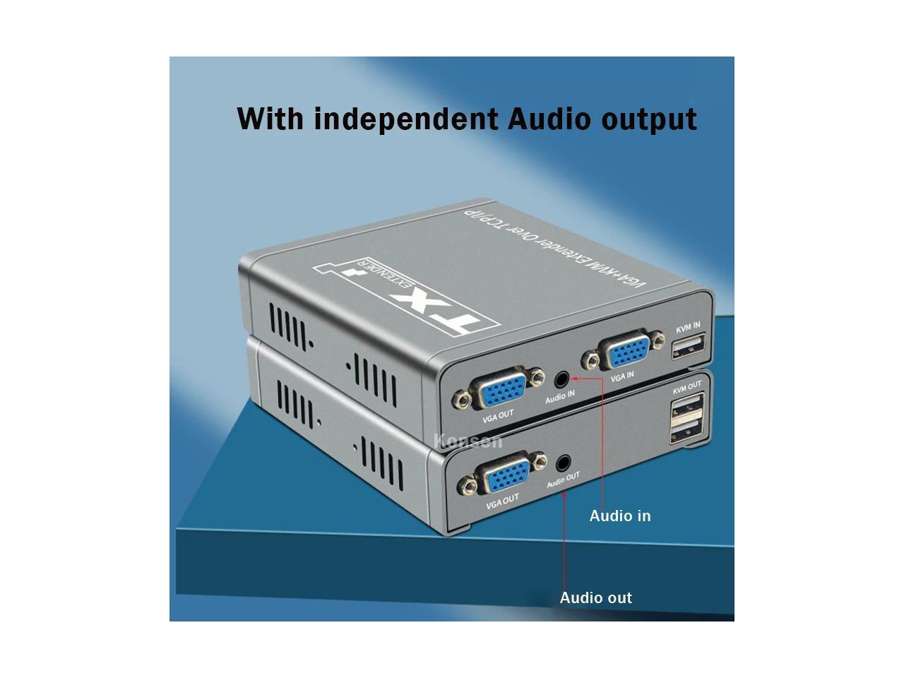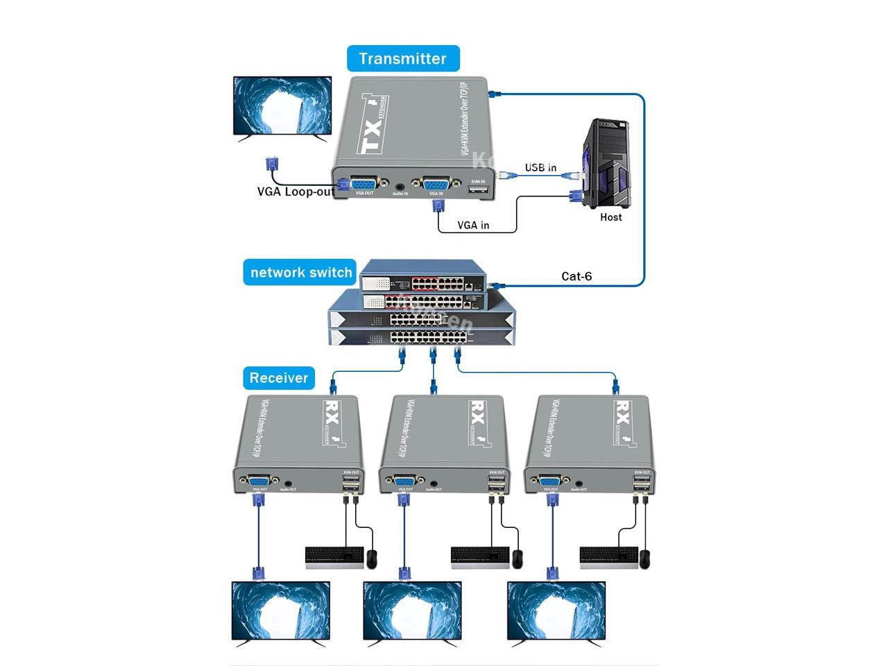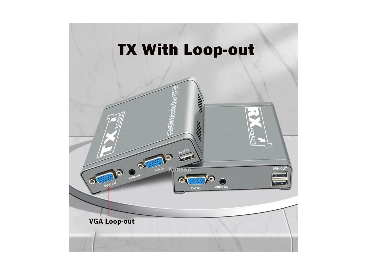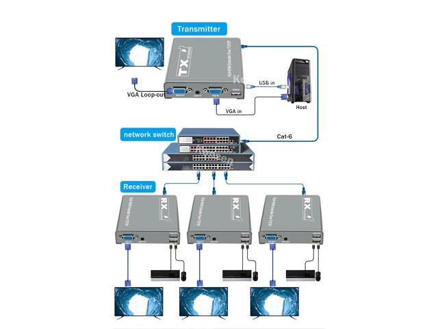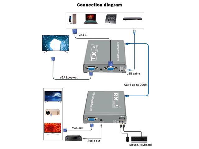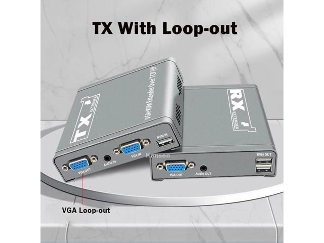- (With US Plug)(only one RX)200M VGA KVM Extender over IP UTP/STP RJ45 Ethernet Cat5e/6 Cable 1080P VGA USB Extension Transmit Switch Support Keyboard Mouse