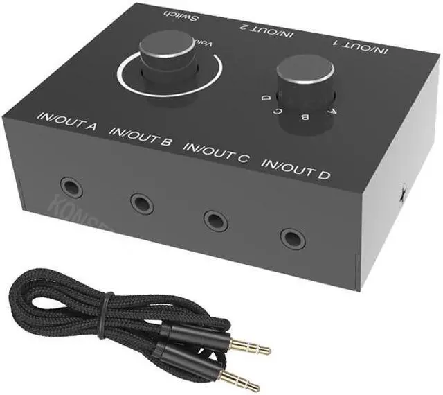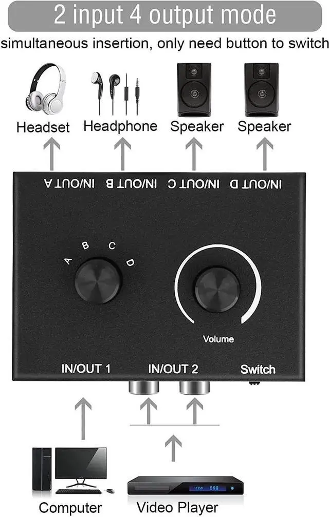 Under 2 in 4 out mode, you can only choose either the aduio source connected to the aux in or the L/R in. That means all 4 outputs can only support