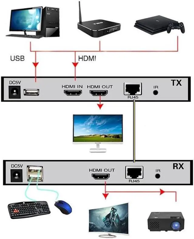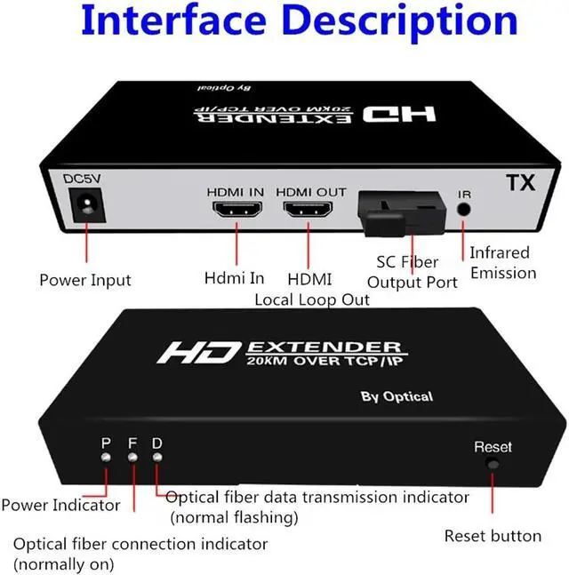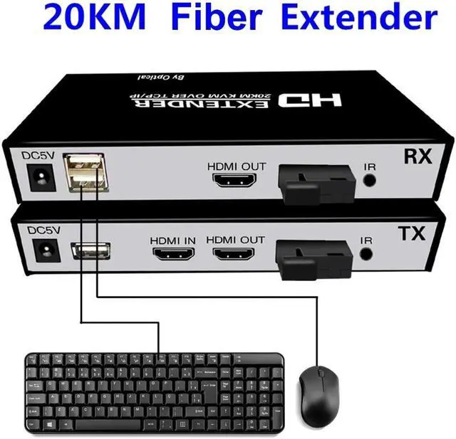 20Km HDMI Fiber Optic KVM Extender, HDMI Transmitter Receiver With Loop Out Over SC Fiber Cable