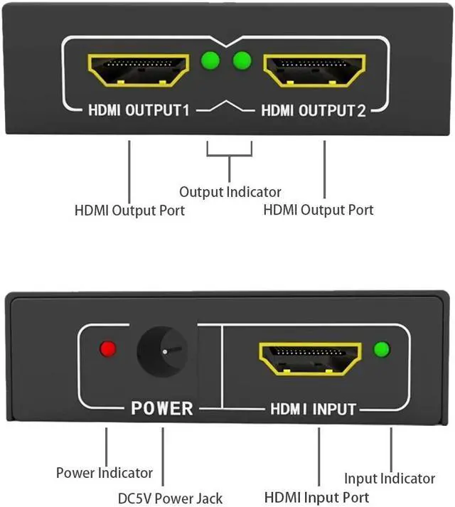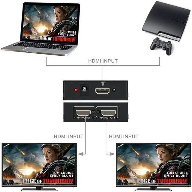2)Distributes 1 HDMI source to 2 HDMI Displays simultaneously.
