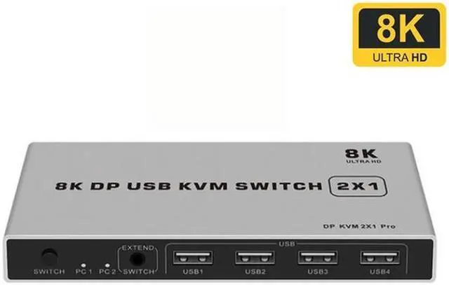 A 2-portUSB DisplayPort KVM switch that allows users to switch between 2 computers from single USB keyboard and Mouse. The device is simple and convennt to install