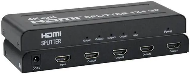 1 in 4 out HDTV Splitter HDMI-Compatible 4K 60Hz 1080P Video Converter 1x4 Metal Amplifier Box Display for HDTV DVD PS3 Xbox Package include: No retail package, only with plastic bag. ) 1 x HDMI-Compatible 1 in 4 out Splitter 1 x Power Adapter