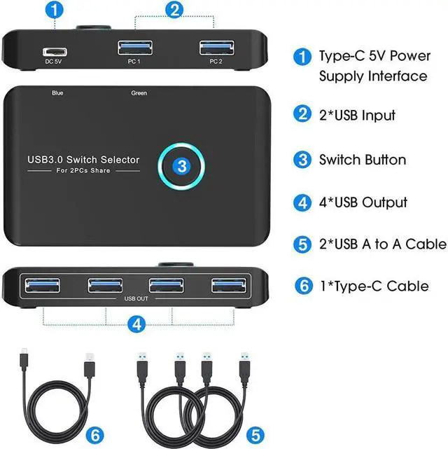 - 1PCS*USB 3.0 Switch 2 in 4 out