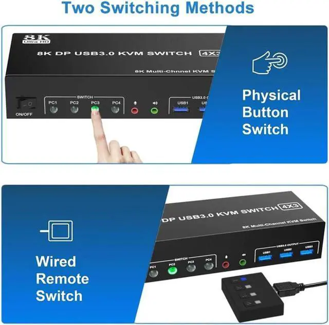 This kvm switch 3 monitor supporting high resolution max up to 8K@60Hz, and also supports 4K@60Hz or other lower resolution (Downward Compatible).