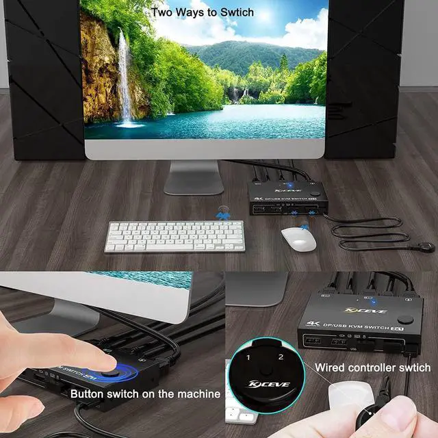 This displayport kvm switch for 2 computers supports resolution up to 4K @60Hz (3840×2160 @60Hz) and 2K@120Hz, backward compatible with lower resolution.