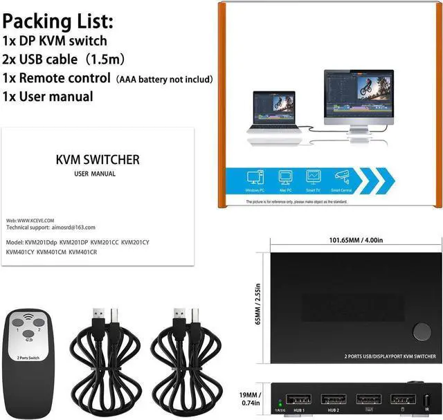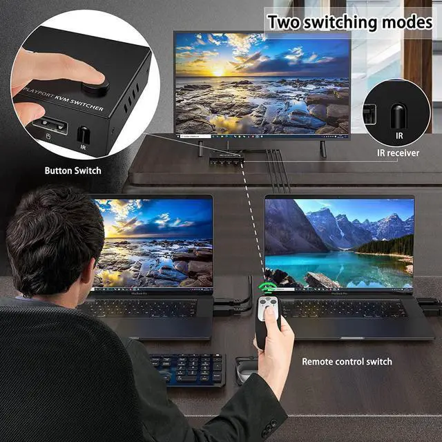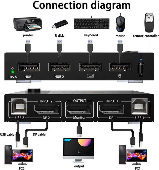 Features four USB 2.0 ports, it is perfect for connecting USB 2.0 peripherals such as a printer, scanner, USB Hub, U Disk, Webcam or any of your USB 2.0 devices to this DP KVM Switch.