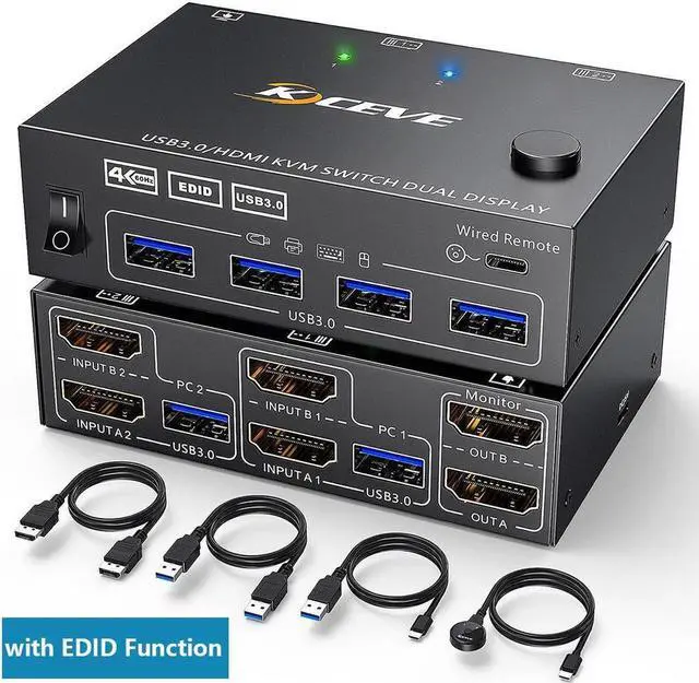 USB 3.0 KVM Switch with EDID emulators in each input port