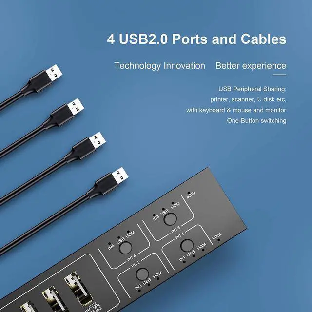 4 x 1 Hdmi KVM Switch Connects 4 Computers to a set of Keyboard, Mouse and Monitor
