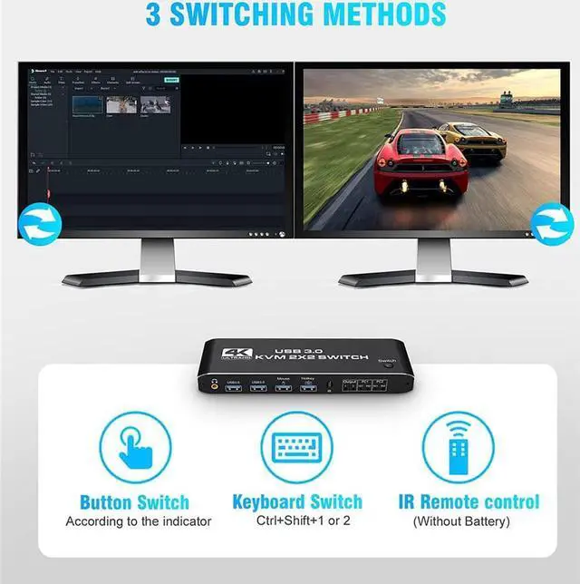 - Product Type: HDMI USB 3.0 KVM Switch (2 in 2 out)