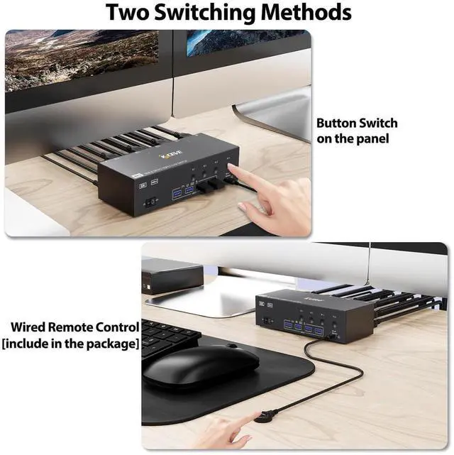 We upgraded the wired control, it's size is more bigger and touch feel more comfortable, this switching way is fast respond and flexible, you can hide the KVM switch under the table and keep desk tidy when using this wired control.