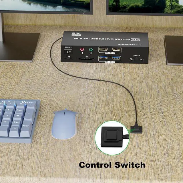 Dual Monitor & Dual PC Control Connect 2 computers to 2 monitors with one keyboard/mouse. Supports 8K@60Hz or 4K@120Hz for ultra-smooth visuals.